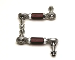 The Infiniti Performance Rear Endlinks (RE) feature massive 1/2" Teflon lined Rod Ends to provide the highest load capacity for use with OEM or stiffer aftermarket sway bars. Custom made High Misalignment studs offer extreme articulation capability (65 degrees) to prevent the endlink from binding when used with different adjustment holes on aftermarket sway bars. Our Endlinks are also length adjustable to eliminate preload on the sway bars, which can result from uneven settling of springs or uneven suspension heights from corner weighting. Black Anodized 6061 Aluminum Turnbuckles work in conjunction with the left and right hand threaded rod ends for simple and precise adjustment. Note: RWD applications only.